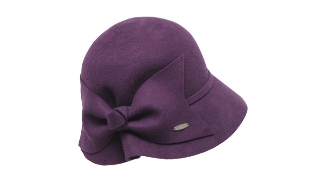 100%純羊毛的帽子,紫色的盆帽采用側(cè)面褶皺設(shè)計(jì),獨(dú)特而鮮明,蝴蝶結(jié)大帽身很保暖。