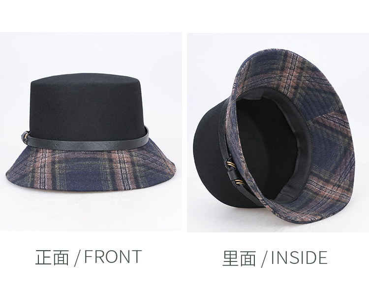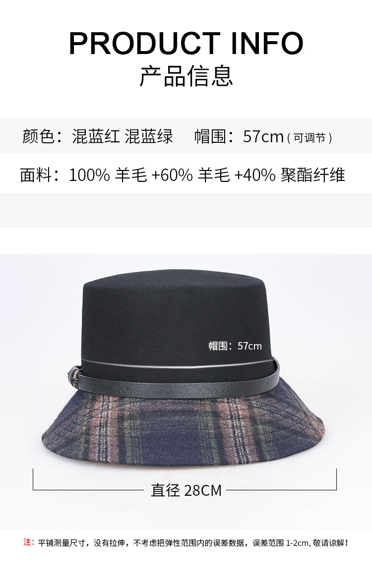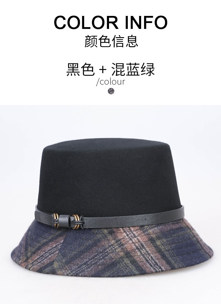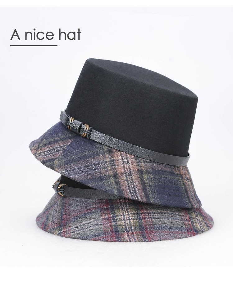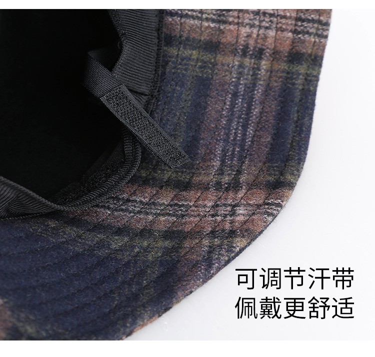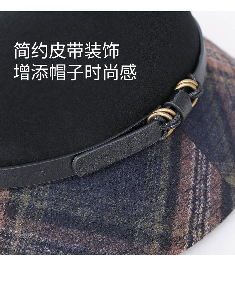 靈瓏小香風(fēng)格子漁夫帽女秋冬百搭帽子潮 英倫復(fù)古皮帶扣遮陽(yáng)盆帽