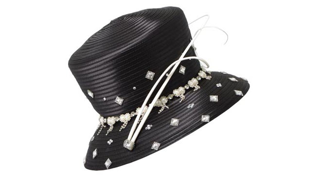 優(yōu)質(zhì)的環(huán)保色丁布料,塑造出了一個高大挺括的帽身,金銀剔透的裝飾更增添了它的高貴。